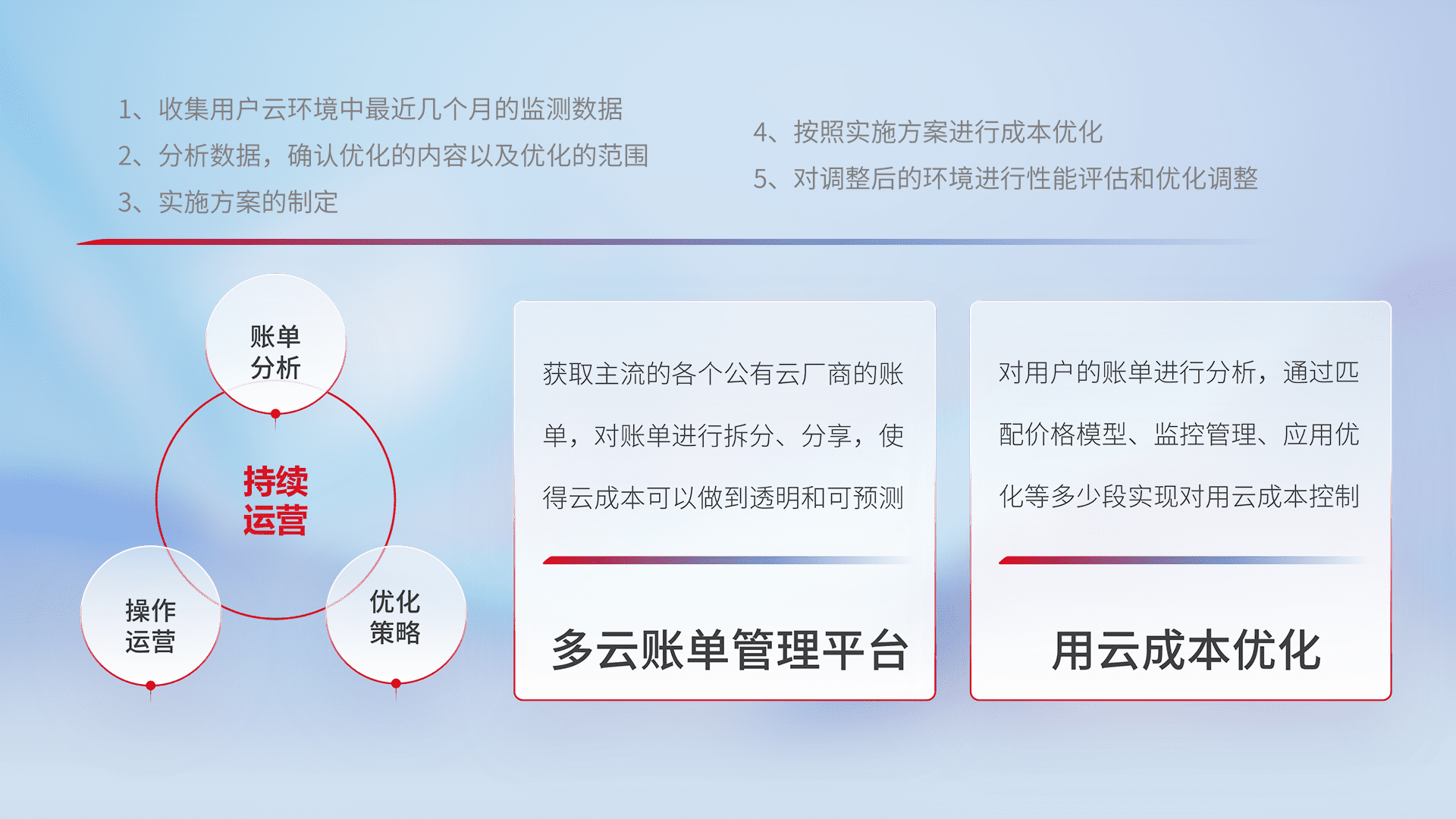 运用智能化工具分析云资源,,提供日常费用可视化工具,,,,自动账单拆分,,,,成本优化云上费用,,,降本增效。。